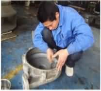①.先預熱已噴砂的設備,再將RJ-16特種耐磨材料按比例混合攪拌均勻,用批刀或塑料刮板將混合后的修復材料涂與設備大部分磨損較輕的部位,朝一個方向涂抹,一邊涂抹一邊壓實;