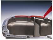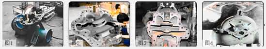 圖1: 渣漿泵泵腔在高速液體中的砂粒的沖刷作用下,磨損嚴(yán)重,圖為打磨泵體磨損面后,用RJ系列特種耐磨材料進行修復(fù)。