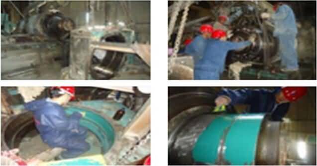 ★?后加工:固化一定時間后即可采用傳統的機加工方法車削、磨削、鉆孔、攻絲等,以達到要求尺寸;固化后如不需機加工,可以在施膠表面完全固化前,用手沾少量水抹平表面,以獲得光滑的外表面;加工后如發現表面有氣孔,要對氣孔處重新鉆孔(至少2mm深),然后重新填料(同樣要粗糙化和清潔表面)。