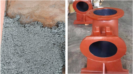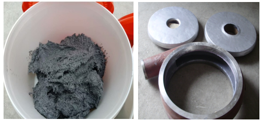 ( 1 )表面處理:在設備耐磨防腐修復之前,對于設備修復面要做表面處理工藝,在除油除潮后,以角磨機或噴砂方法將待修補表面處理成均勻的粗糙表面,以增強修補材料與修補表面的粘結力強度。