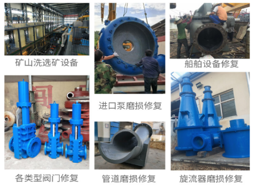 主要應(yīng)用于:選礦設(shè)備過流沖蝕磨損修復(fù),如:旋風(fēng)分離器,浮選柱,浮選機(jī),泡沫罐,分級(jí)機(jī),攪拌罐等設(shè)備的預(yù)涂耐磨層,溜槽的維修,管道配件,渣漿泵和其他設(shè)備(典型用途請(qǐng)參見主要物理和機(jī)械性能表)。