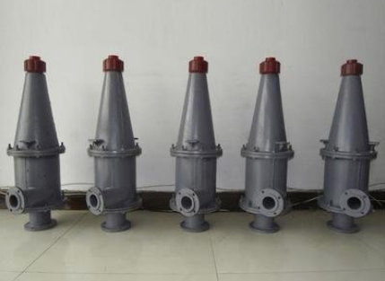 旋流器是一種將固液兩相混合物在離心力和重力的作用下進行分離的設備。混合液以一定的壓力切向進入旋流器,在圓柱腔內高速旋轉。混合物中密度大的成分沿軸向向下運動,并沿徑向向外運動,到達錐體段后沿外壁向下運動,并由底部口排出;密度小的成分向軸線方向運動,并在軸線中心形成一向上運動的渦旋,然后由溢流口排出。旋流器廣泛應用于選礦、洗煤、化工領域。